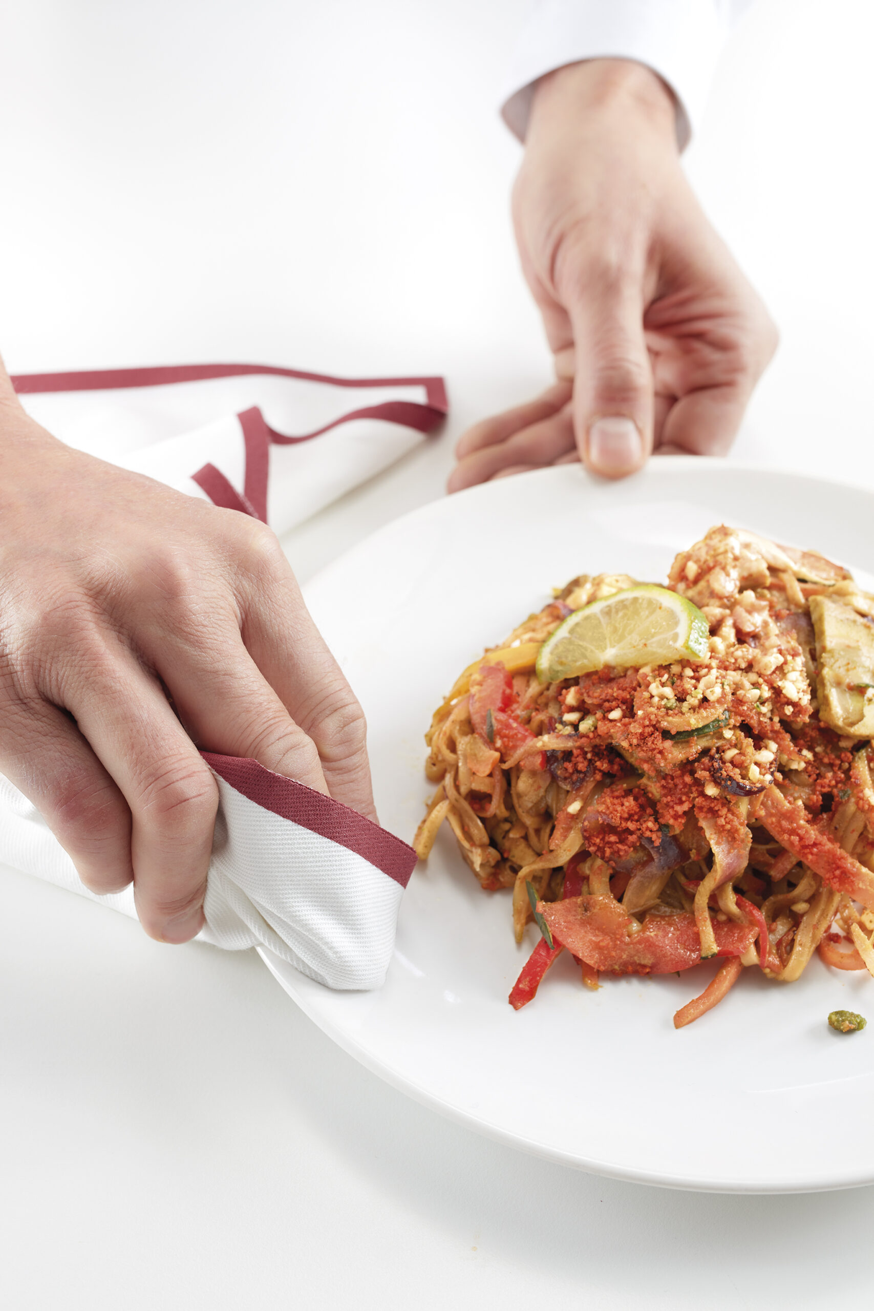 - weiß mit rotem Rand für Tellerrand reingen